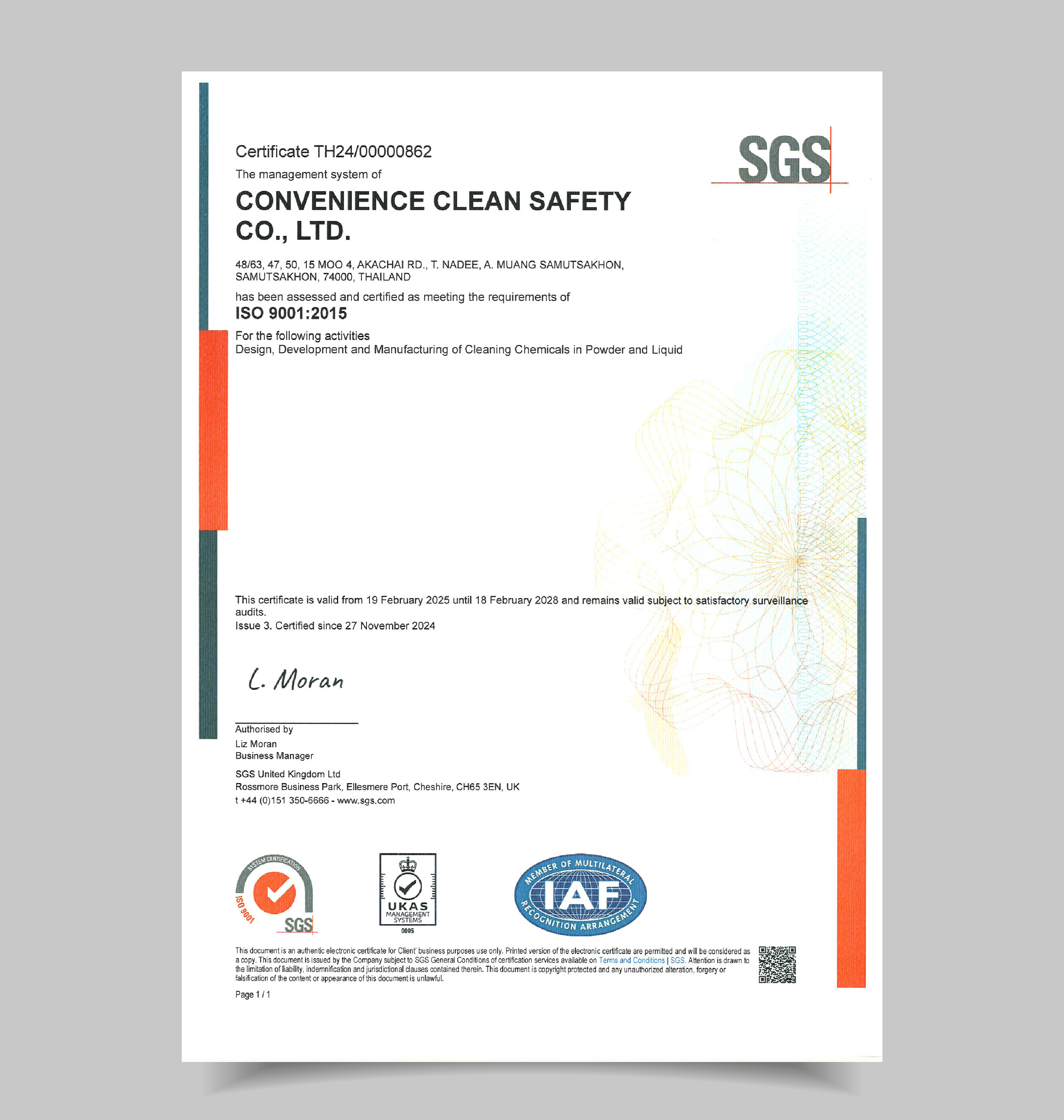 บริษัท สะดวก สะอาด ปลอดภัย จำกัด เราคือผู้ผลิตและจัดจำหน่ายผงซักฟอก และเคมีภัณฑ์ทำความสะอาดหลากชนิด ด้วยประสบการณ์มากว่า 20 ปี เราจึงมีความเชี่ยวชาญในผลิตภัณฑ์ทำความสะอาดเป็นพิเศษ