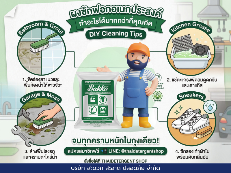 การจัดเก็บที่ไม่เหมาะสม: การวางผงซักฟอกไว้ในที่ชื้น เช่น ห้องน้ำ ห้องซักรีดที่ไม่มีการระบายอากาศที่ดี หรือใกล้แหล่งน้ำ